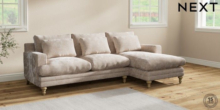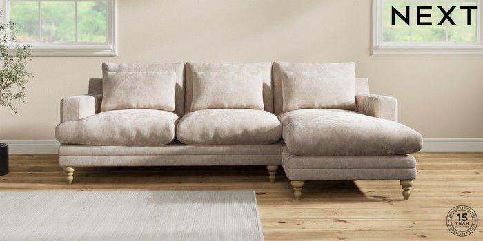 7.2.10 Hutton Deep Relaxed Sit Medium Sofa Chaise - Right Hand Distressed Velour Mid Natural Country Turned - Light | Made Click here to use our website with more accessibility support, for example screen readers
