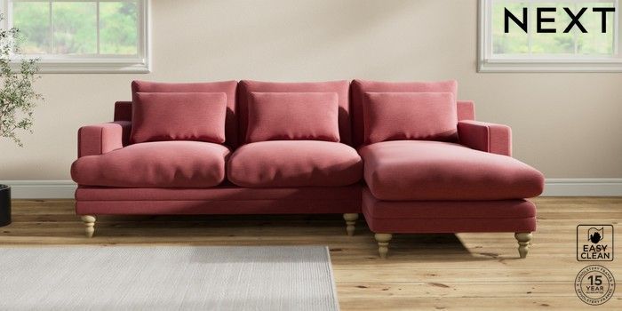7.2.10 Hutton Deep Relaxed Sit Medium Sofa Chaise - Right Hand Fine Chenille Easy Clean Mid Pink Country Turned - Light | Made Click here to use our website with more accessibility support, for example screen readers