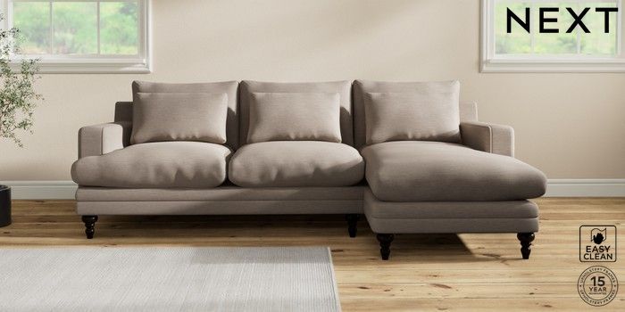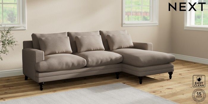 7.2.10 Hutton Deep Relaxed Sit Medium Sofa Chaise - Right Hand Fine Chenille Easy Clean Mid Taupe Brown Country Turned - Dark | Made Click here to use our website with more accessibility support, for example screen readers