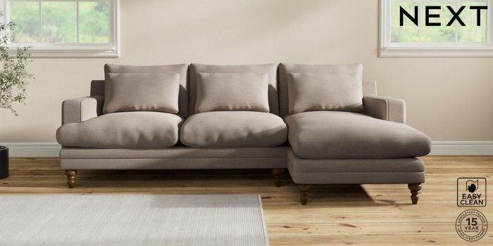 7.2.10 Hutton Deep Relaxed Sit Medium Sofa Chaise - Right Hand Fine Chenille Easy Clean Mid Taupe Brown Country Turned - Mid | Made Click here to use our website with more accessibility support, for example screen readers