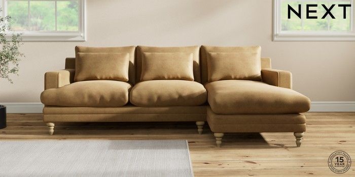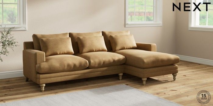 7.2.10 Hutton Deep Relaxed Sit Medium Sofa Chaise - Right Hand Luxe Chenille Honey Yellow Country Turned - Light | Made Click here to use our website with more accessibility support, for example screen readers