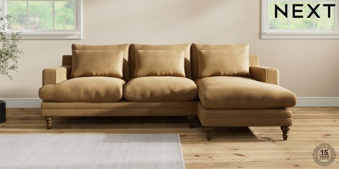 7.2.10 Hutton Deep Relaxed Sit Medium Sofa Chaise - Right Hand Luxe Chenille Honey Yellow Country Turned - Mid | Made Click here to use our website with more accessibility support, for example screen readers