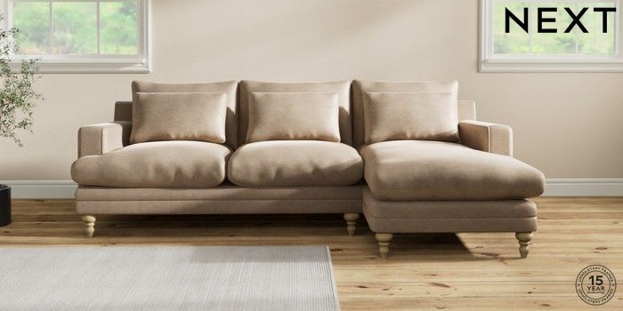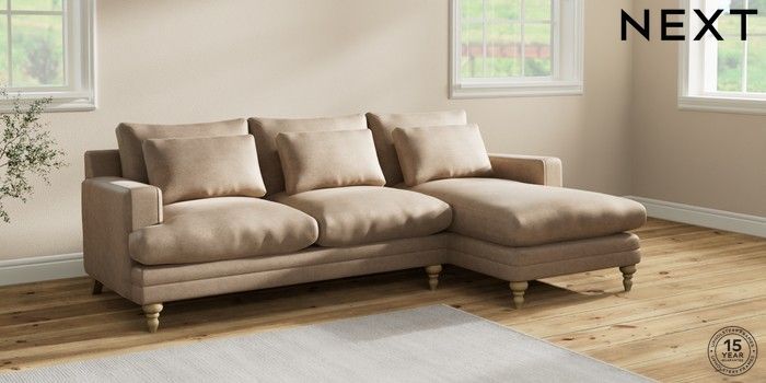 7.2.10 Hutton Deep Relaxed Sit Medium Sofa Chaise - Right Hand Luxe Chenille Mid Camel Beige Country Turned - Light | Made Click here to use our website with more accessibility support, for example screen readers