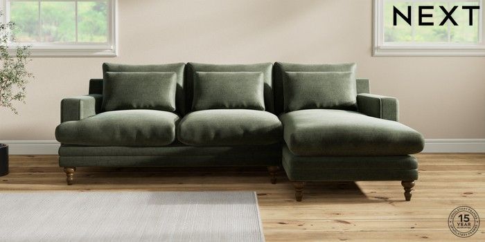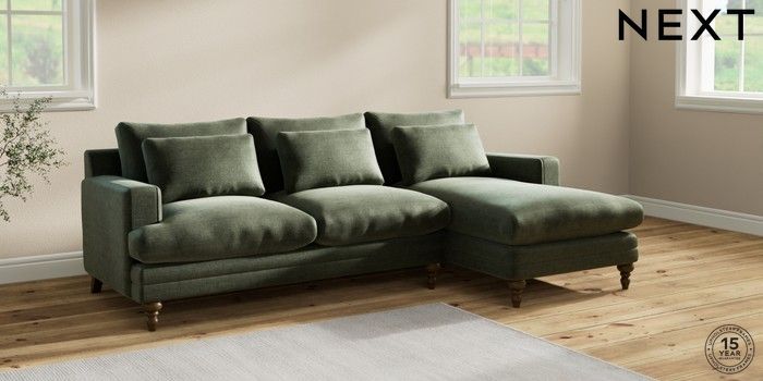 7.2.10 Hutton Deep Relaxed Sit Medium Sofa Chaise - Right Hand Luxe Chenille Mid Green Country Turned - Mid | Made Click here to use our website with more accessibility support, for example screen readers