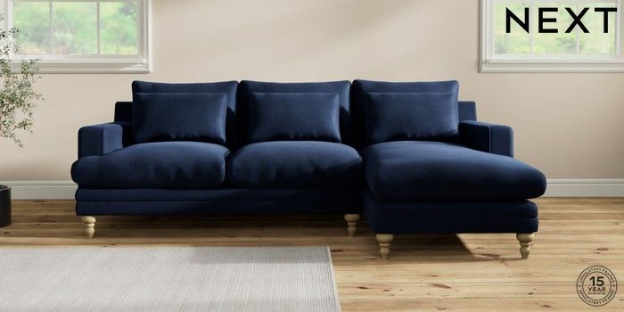 7.2.10 Hutton Deep Relaxed Sit Medium Sofa Chaise - Right Hand Luxe Chenille Navy Blue Country Turned - Light | Made Click here to use our website with more accessibility support, for example screen readers