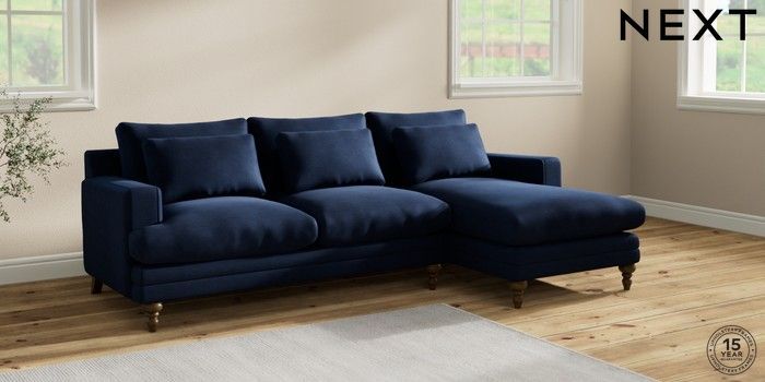 7.2.10 Hutton Deep Relaxed Sit Medium Sofa Chaise - Right Hand Luxe Chenille Navy Blue Country Turned - Mid | Made Click here to use our website with more accessibility support, for example screen readers