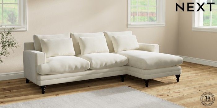 7.2.10 Hutton Deep Relaxed Sit Medium Sofa Chaise - Right Hand Luxe Chenille Oyster Country Turned - Dark | Made Click here to use our website with more accessibility support, for example screen readers
