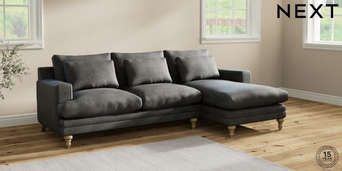 7.2.10 Hutton Deep Relaxed Sit Medium Sofa Chaise - Right Hand Monza Faux Leather Easy Clean Dark Grey Country Turned - Light | Made Click here to use our website with more accessibility support, for example screen readers
