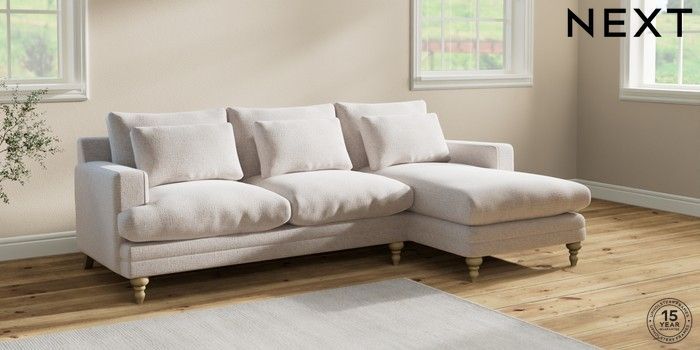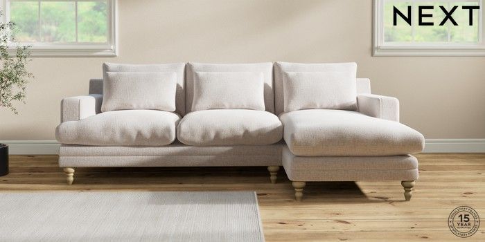 7.2.10 Hutton Deep Relaxed Sit Medium Sofa Chaise - Right Hand Multi Weave Oyster Country Turned - Light | Made Click here to use our website with more accessibility support, for example screen readers