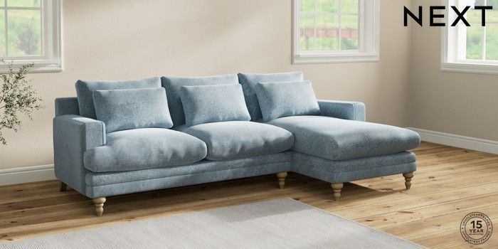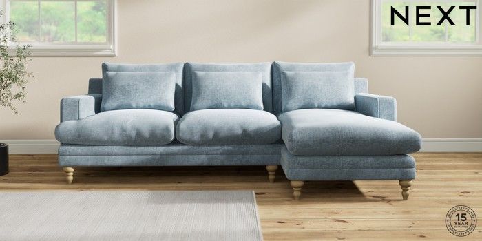 7.2.10 Hutton Deep Relaxed Sit Medium Sofa Chaise - Right Hand Plush Chenille Light Blue Country Turned - Light | Made Click here to use our website with more accessibility support, for example screen readers