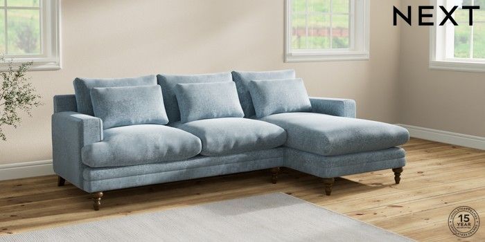 7.2.10 Hutton Deep Relaxed Sit Medium Sofa Chaise - Right Hand Plush Chenille Light Blue Country Turned - Mid | Made Click here to use our website with more accessibility support, for example screen readers