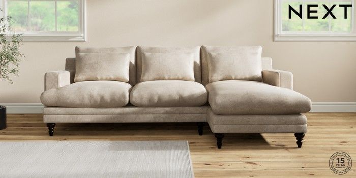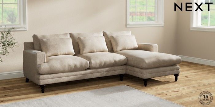 7.2.10 Hutton Deep Relaxed Sit Medium Sofa Chaise - Right Hand Plush Chenille Light Natural Country Turned - Dark | Made Click here to use our website with more accessibility support, for example screen readers