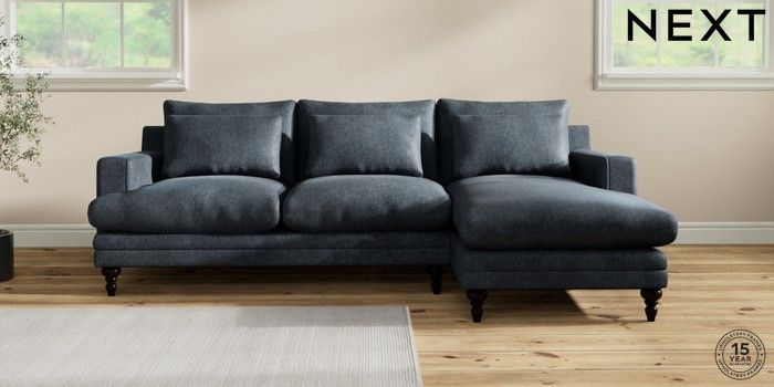 7.2.10 Hutton Deep Relaxed Sit Medium Sofa Chaise - Right Hand Plush Chenille Slate Blue Country Turned - Dark | Made Click here to use our website with more accessibility support, for example screen readers