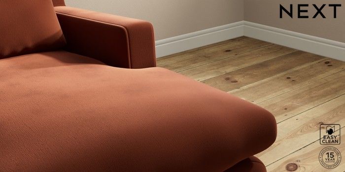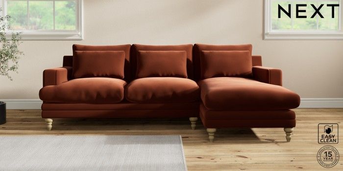 7.2.10 Hutton Deep Relaxed Sit Medium Sofa Chaise - Right Hand Plush Velvet Easy Clean Ginger Orange Country Turned - Light | Made Click here to use our website with more accessibility support, for example screen readers