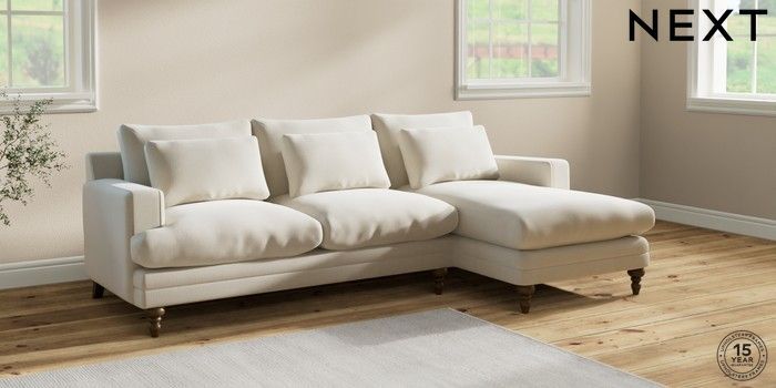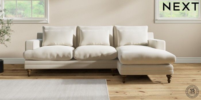 7.2.10 Hutton Deep Relaxed Sit Medium Sofa Chaise - Right Hand Relaxed Linen Look Oyster Country Turned - Mid | Made Click here to use our website with more accessibility support, for example screen readers