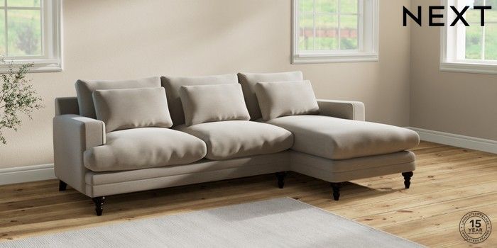 7.2.10 Hutton Deep Relaxed Sit Medium Sofa Chaise - Right Hand Ripple Chenille Light Natural Country Turned - Dark | Made Click here to use our website with more accessibility support, for example screen readers