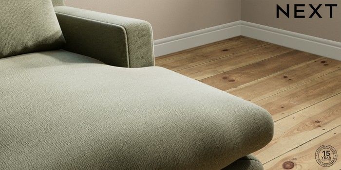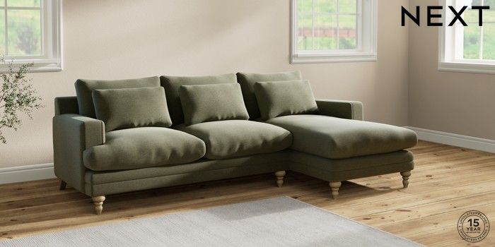 7.2.10 Hutton Deep Relaxed Sit Medium Sofa Chaise - Right Hand Ripple Chenille Mid Moss Green Country Turned - Light | Made Click here to use our website with more accessibility support, for example screen readers