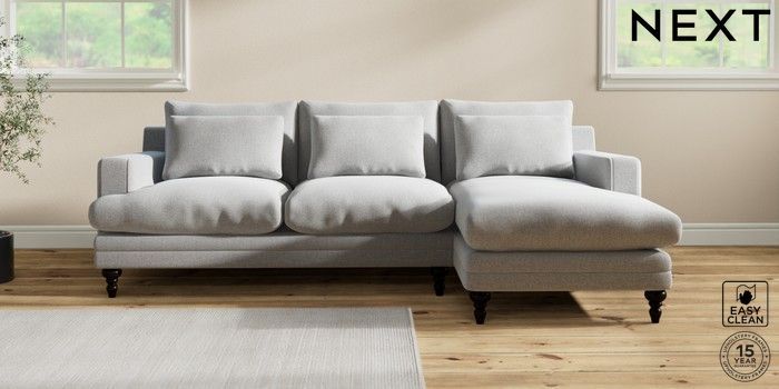 7.2.10 Hutton Deep Relaxed Sit Medium Sofa Chaise - Right Hand Tweedy Blend Easy Clean Light Silver Grey Country Turned - Dark | Made Click here to use our website with more accessibility support, for example screen readers