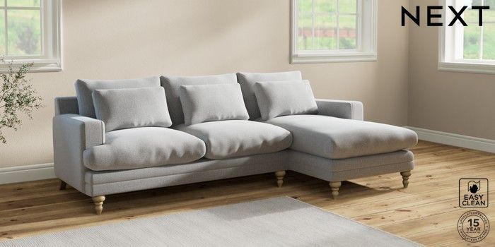 7.2.10 Hutton Deep Relaxed Sit Medium Sofa Chaise - Right Hand Tweedy Blend Easy Clean Light Silver Grey Country Turned - Light | Made Click here to use our website with more accessibility support, for example screen readers