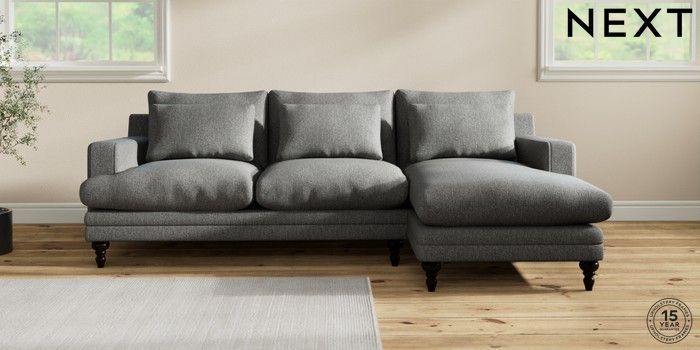 7.2.10 Hutton Deep Relaxed Sit Medium Sofa Chaise - Right Hand Tweedy Chenille Dark Grey Country Turned - Dark | Made Click here to use our website with more accessibility support, for example screen readers