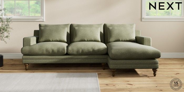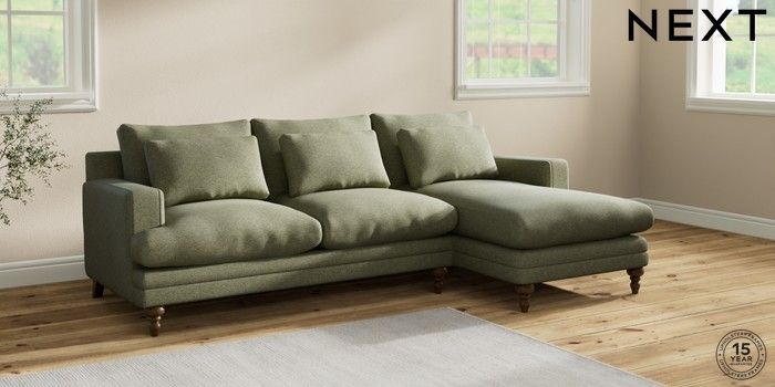 7.2.10 Hutton Deep Relaxed Sit Medium Sofa Chaise - Right Hand Tweedy Chenille Mid Moss Green Country Turned - Mid | Made Click here to use our website with more accessibility support, for example screen readers