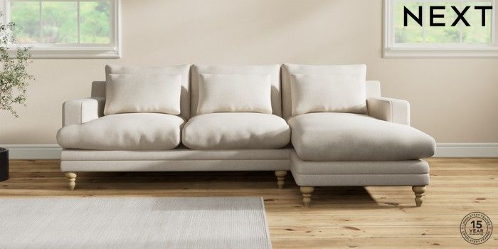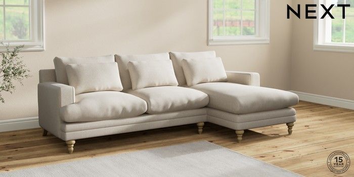 7.2.10 Hutton Deep Relaxed Sit Medium Sofa Chaise - Right Hand Tweedy Chenille Oyster Country Turned - Light | Made Click here to use our website with more accessibility support, for example screen readers