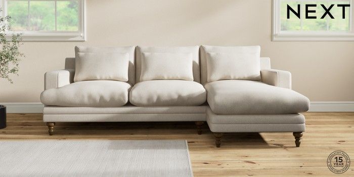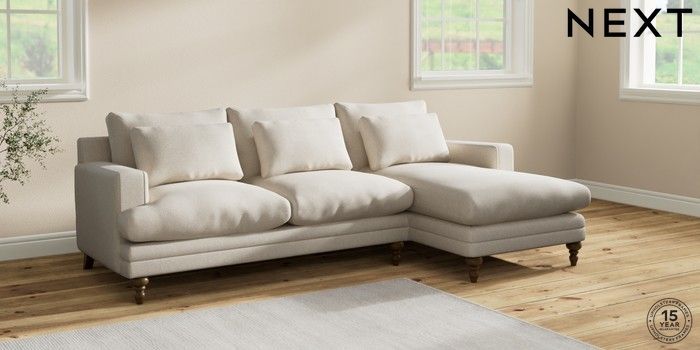 7.2.10 Hutton Deep Relaxed Sit Medium Sofa Chaise - Right Hand Tweedy Chenille Oyster Country Turned - Mid | Made Click here to use our website with more accessibility support, for example screen readers
