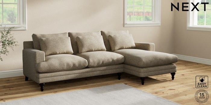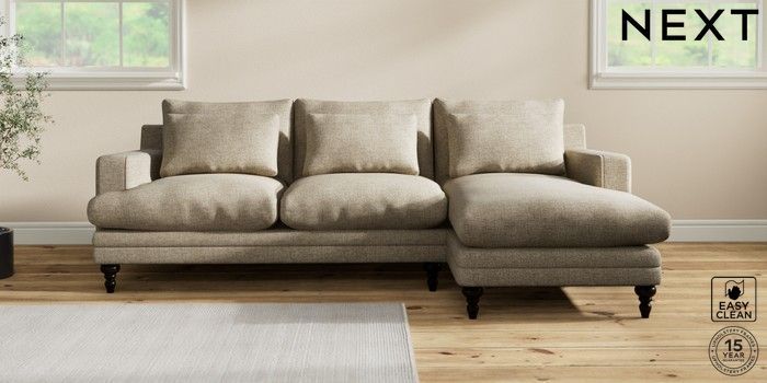 7.2.10 Hutton Deep Relaxed Sit Medium Sofa Chaise - Right Hand Woven Chenille Easy Clean Mid Natural Country Turned - Dark | Made Click here to use our website with more accessibility support, for example screen readers