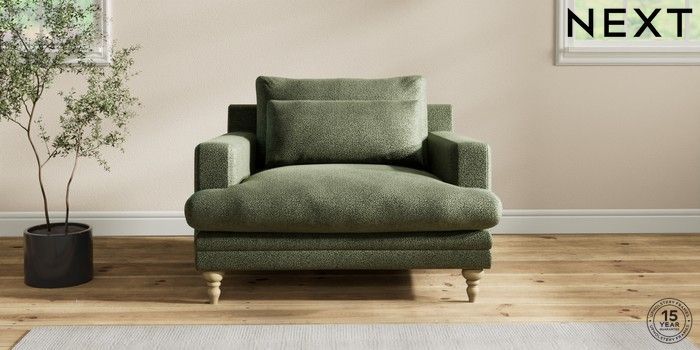 7.2.10 Hutton Deep Relaxed Sit Snuggle Boucle Chenille Dark Moss Green Country Turned - Light | Made Click here to use our website with more accessibility support, for example screen readers