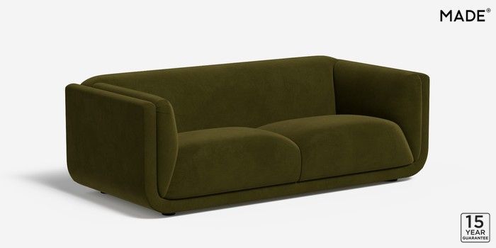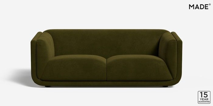 6.12.1 Jadis by Made 3 Seater Small Sofa Matt Velvet Easy Clean Deep Olive Green Glide | Made Click here to use our website with more accessibility support, for example screen readers