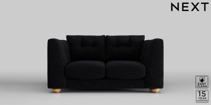 7.2.10 Jasmine 2 Seater Small Sofa Fine Chenille Easy Clean Black Large Bun - Light | Made Click here to use our website with more accessibility support, for example screen readers