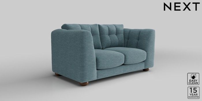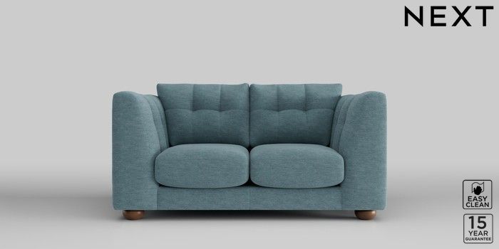 7.2.10 Jasmine 2 Seater Small Sofa Fine Chenille Easy Clean Mid Blue Large Bun - Mid | Made Click here to use our website with more accessibility support, for example screen readers