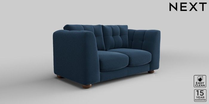 7.2.10 Jasmine 2 Seater Small Sofa Plush Velvet Easy Clean Airforce Blue Large Bun - Mid | Made Click here to use our website with more accessibility support, for example screen readers