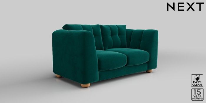 7.2.10 Jasmine 2 Seater Small Sofa Plush Velvet Easy Clean Juniper Green Large Bun - Light | Made Click here to use our website with more accessibility support, for example screen readers