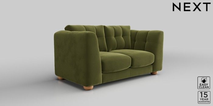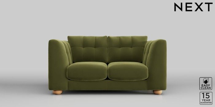 7.2.10 Jasmine 2 Seater Small Sofa Plush Velvet Easy Clean Mid Olive Green Large Bun - Light | Made Click here to use our website with more accessibility support, for example screen readers
