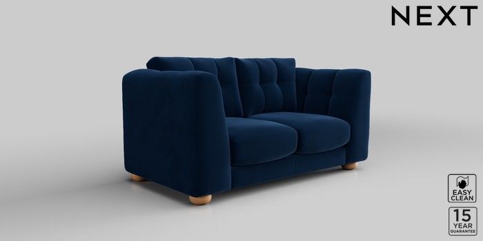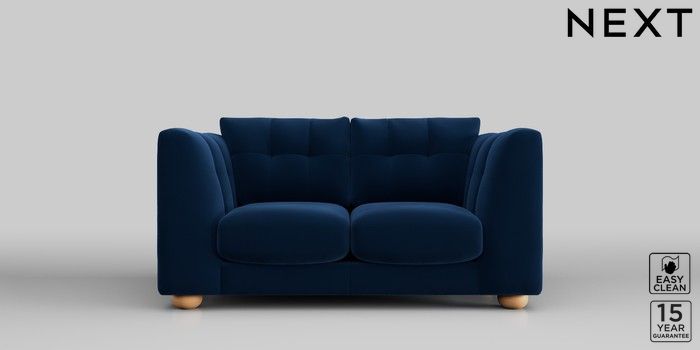 7.2.10 Jasmine 2 Seater Small Sofa Plush Velvet Easy Clean Navy Blue Large Bun - Light | Made Click here to use our website with more accessibility support, for example screen readers