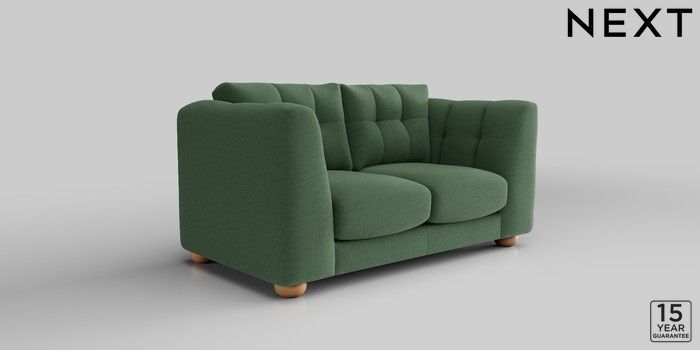 7.2.10 Jasmine 2 Seater Small Sofa Relaxed Linen Look Dark Green Large Bun - Light | Made Click here to use our website with more accessibility support, for example screen readers