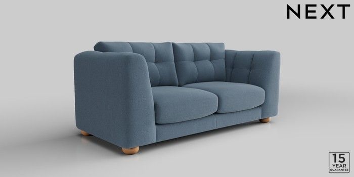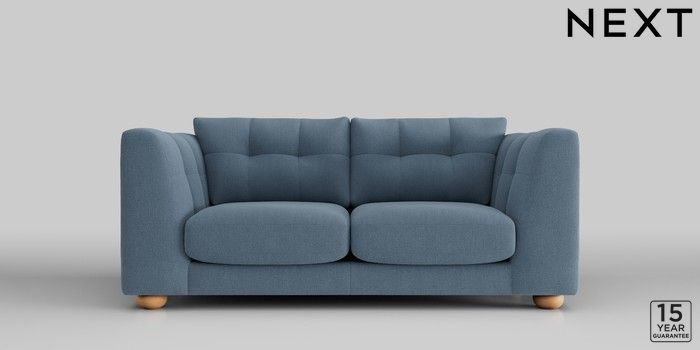 7.2.10 Jasmine 3 Seater Small Sofa Relaxed Linen Look Mid Blue Large Bun - Light | Made Click here to use our website with more accessibility support, for example screen readers