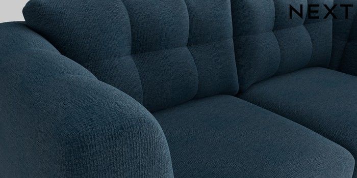 7.2.10 Jasmine 3 Seater Small Sofa Ripple Chenille Dark Blue Large Bun - Light | Made Click here to use our website with more accessibility support, for example screen readers