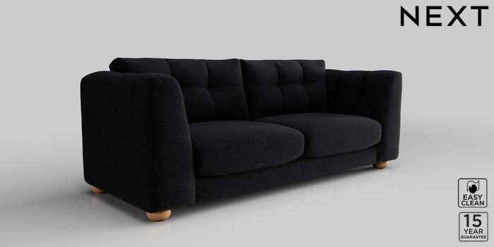 7.2.10 Jasmine 3 Seater Sofa Fine Chenille Easy Clean Black Large Bun - Light | Made Click here to use our website with more accessibility support, for example screen readers