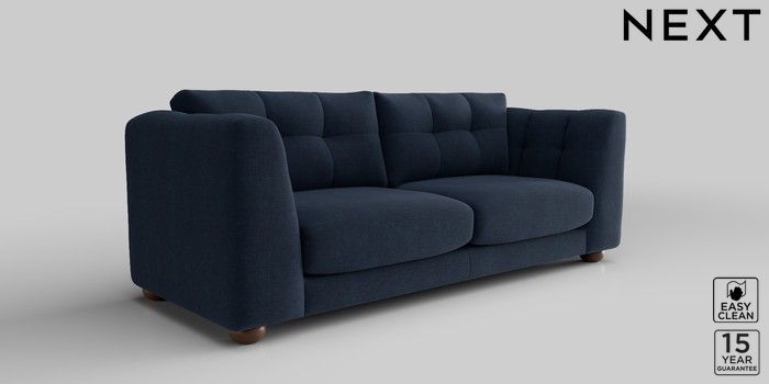 7.2.10 Jasmine 3 Seater Sofa Fine Chenille Easy Clean Dark Navy Blue Large Bun - Mid | Made Click here to use our website with more accessibility support, for example screen readers