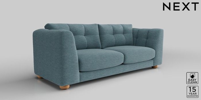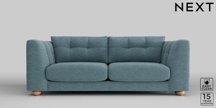 7.2.10 Jasmine 3 Seater Sofa Fine Chenille Easy Clean Mid Blue Large Bun - Light | Made Click here to use our website with more accessibility support, for example screen readers
