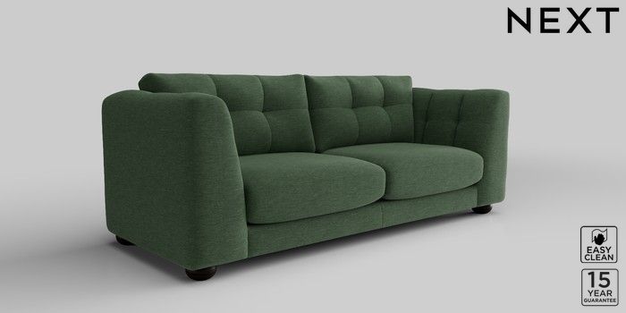 7.2.10 Jasmine 3 Seater Sofa Fine Chenille Easy Clean Mid Khaki Green Large Bun - Dark | Made Click here to use our website with more accessibility support, for example screen readers