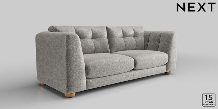 7.2.10 Jasmine 3 Seater Sofa Plush Chenille Light Grey Large Bun - Light | Made Click here to use our website with more accessibility support, for example screen readers