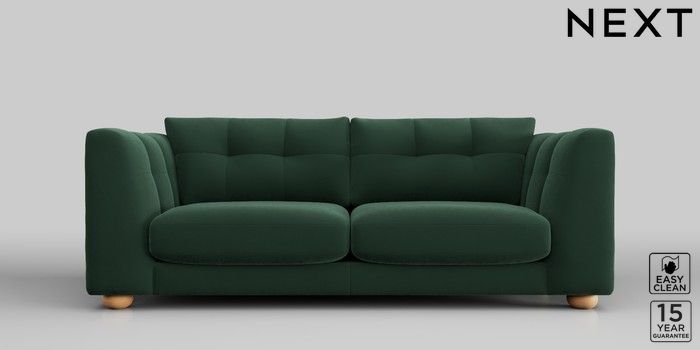 7.2.10 Jasmine 3 Seater Sofa Plush Velvet Easy Clean Bottle Green Large Bun - Light | Made Click here to use our website with more accessibility support, for example screen readers