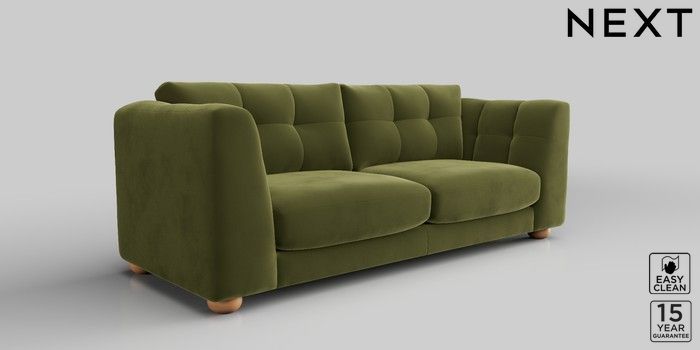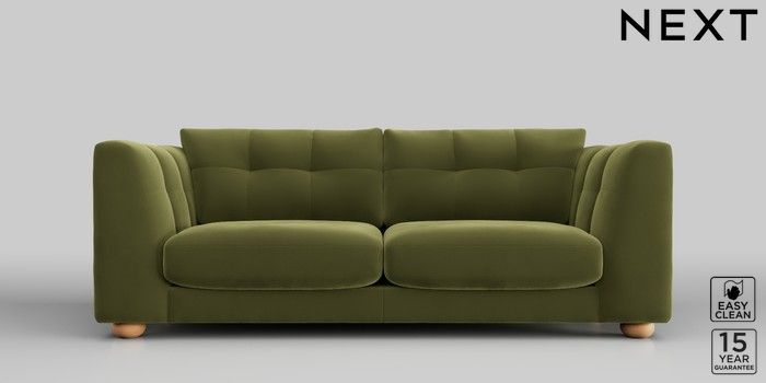 7.2.10 Jasmine 3 Seater Sofa Plush Velvet Easy Clean Mid Olive Green Large Bun - Light | Made Click here to use our website with more accessibility support, for example screen readers