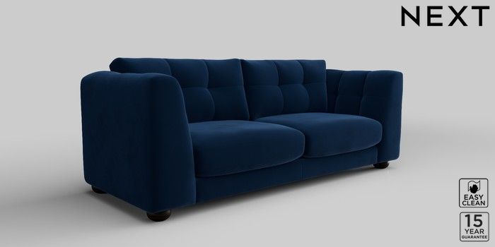 7.2.10 Jasmine 3 Seater Sofa Plush Velvet Easy Clean Navy Blue Large Bun - Dark | Made Click here to use our website with more accessibility support, for example screen readers