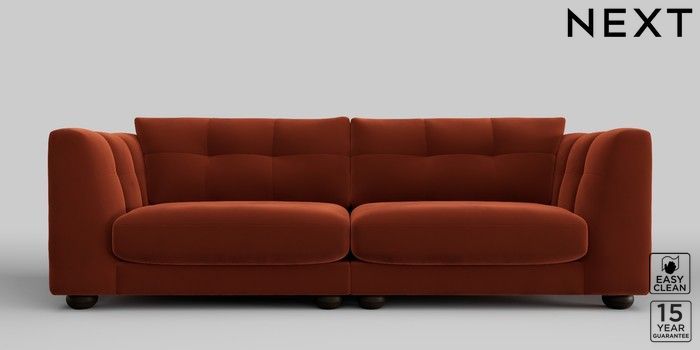 7.2.10 Jasmine 4 Seater Sofa Plush Velvet Easy Clean Ginger Orange Large Bun - Dark | Made Click here to use our website with more accessibility support, for example screen readers