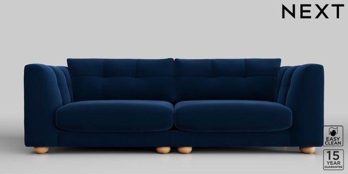 7.2.10 Jasmine 4 Seater Sofa Plush Velvet Easy Clean Navy Blue Large Bun - Light | Made Click here to use our website with more accessibility support, for example screen readers