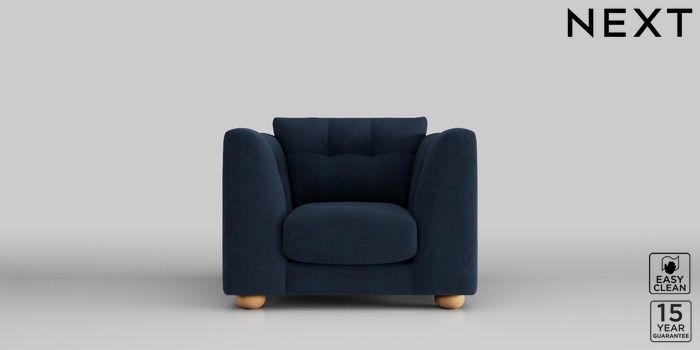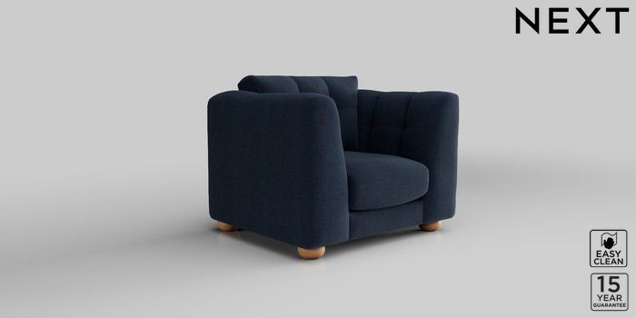 7.2.10 Jasmine Armchair Fine Chenille Easy Clean Dark Navy Blue Large Bun - Light | Made Click here to use our website with more accessibility support, for example screen readers